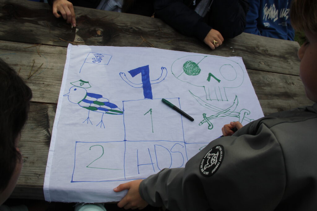 In het donker werd nog een keer uitgevaren, op zoek naar verschillende stukken van piratenvlaggen. Met een hoofd vol avontuur gingen we de eerste nacht in.