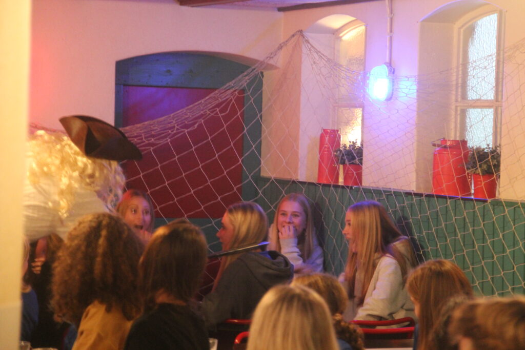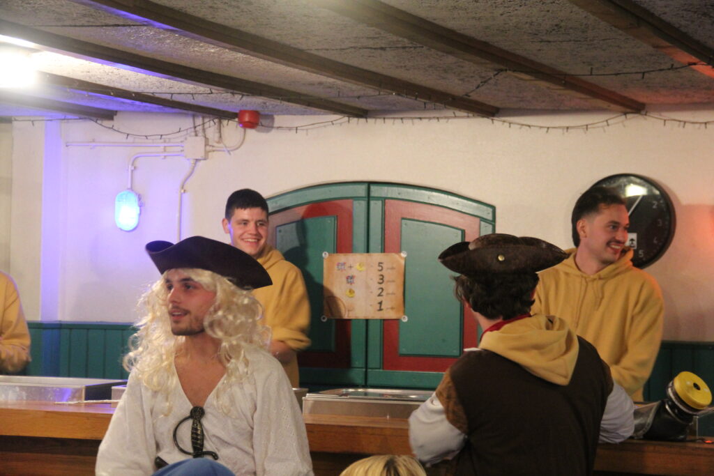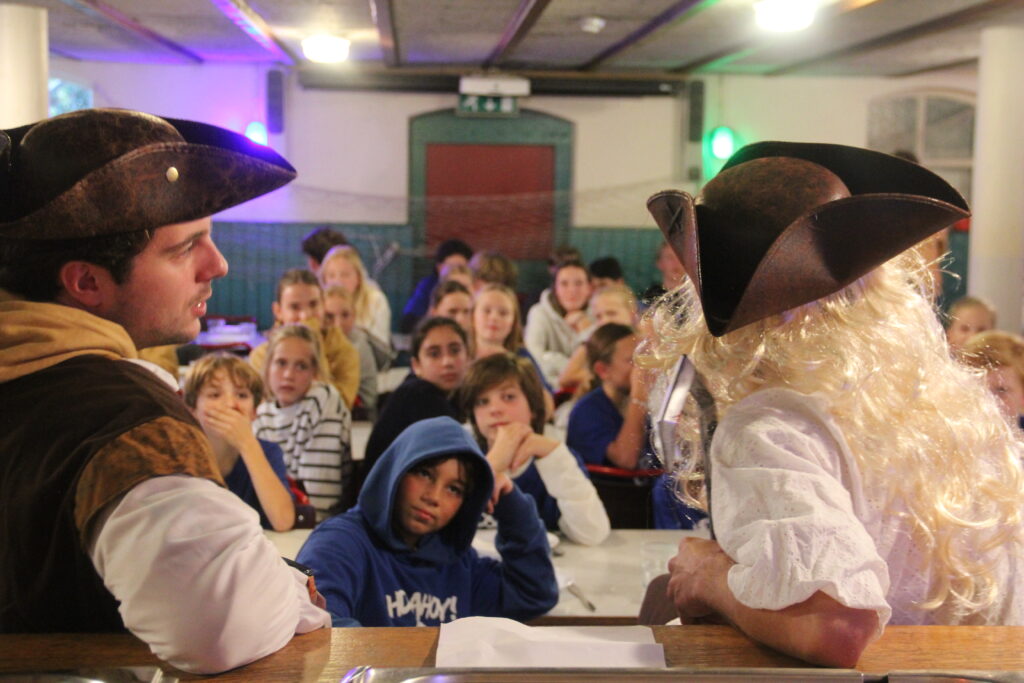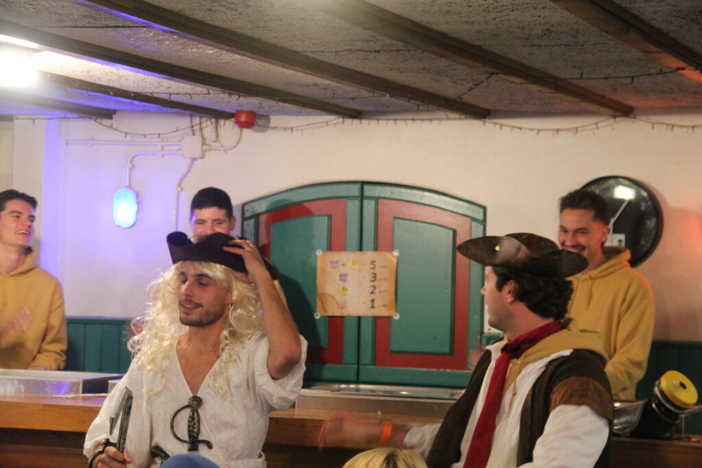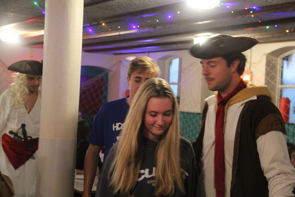 Om ons avontuur over de zeven zeeën goed te kunnen volbrengen is een goede crew van belang. Door in verschillende schatkisten te zoeken naar gerichte juwelen, werd duidelijk tot welke crew je behoorde. Middels een cursus kompas- en kaartlezen gingen de groepjes terug op weg richting de veilige haven.