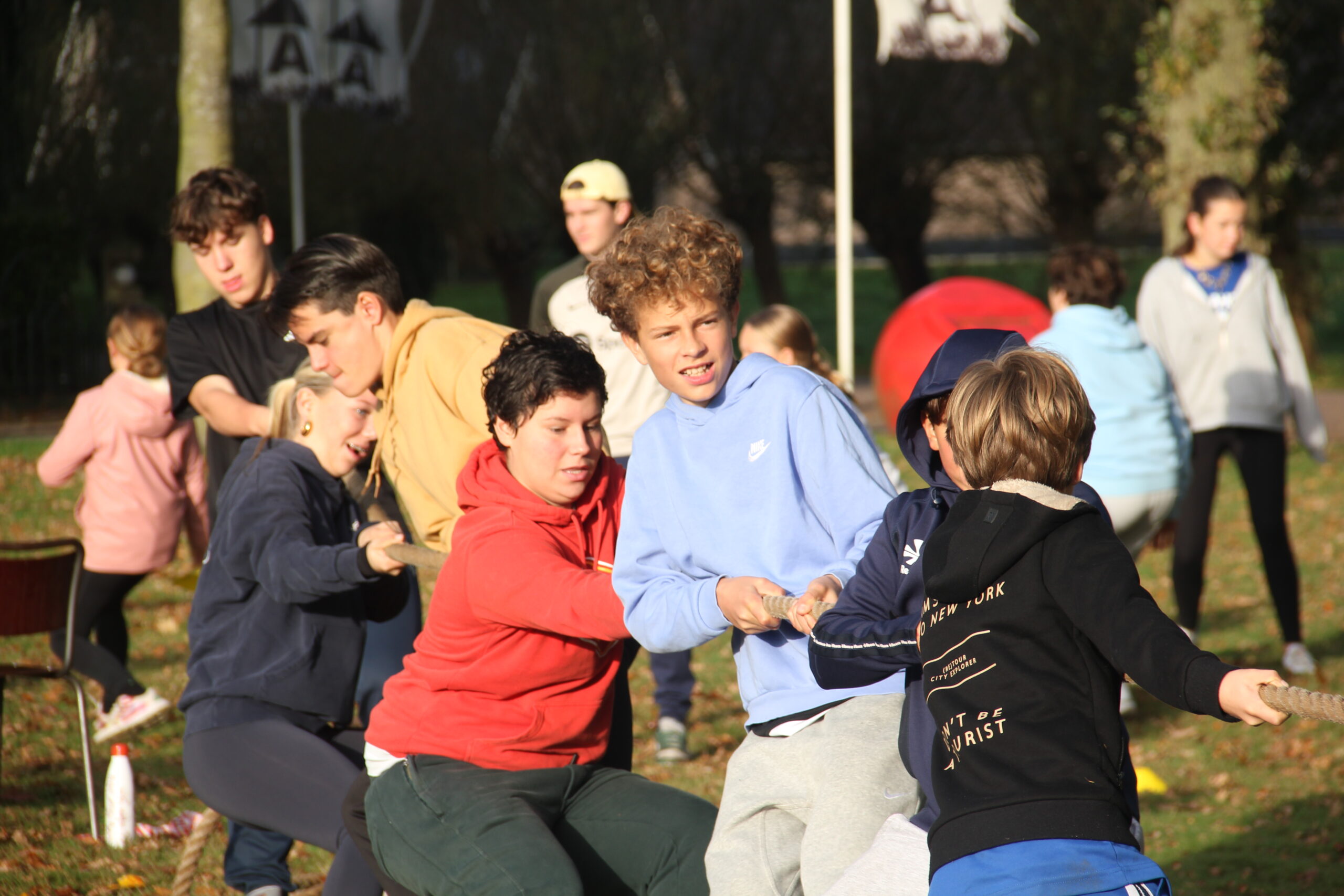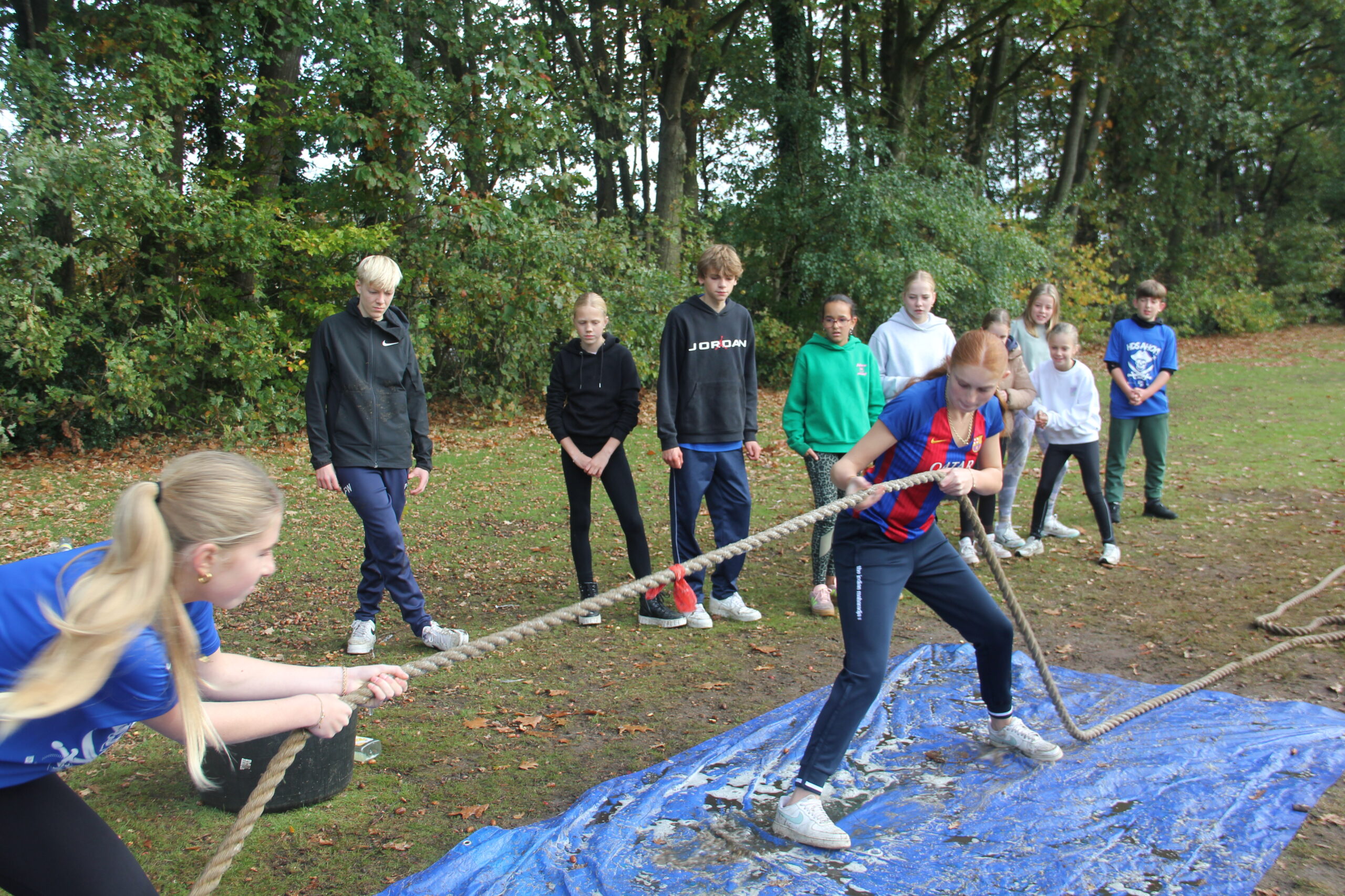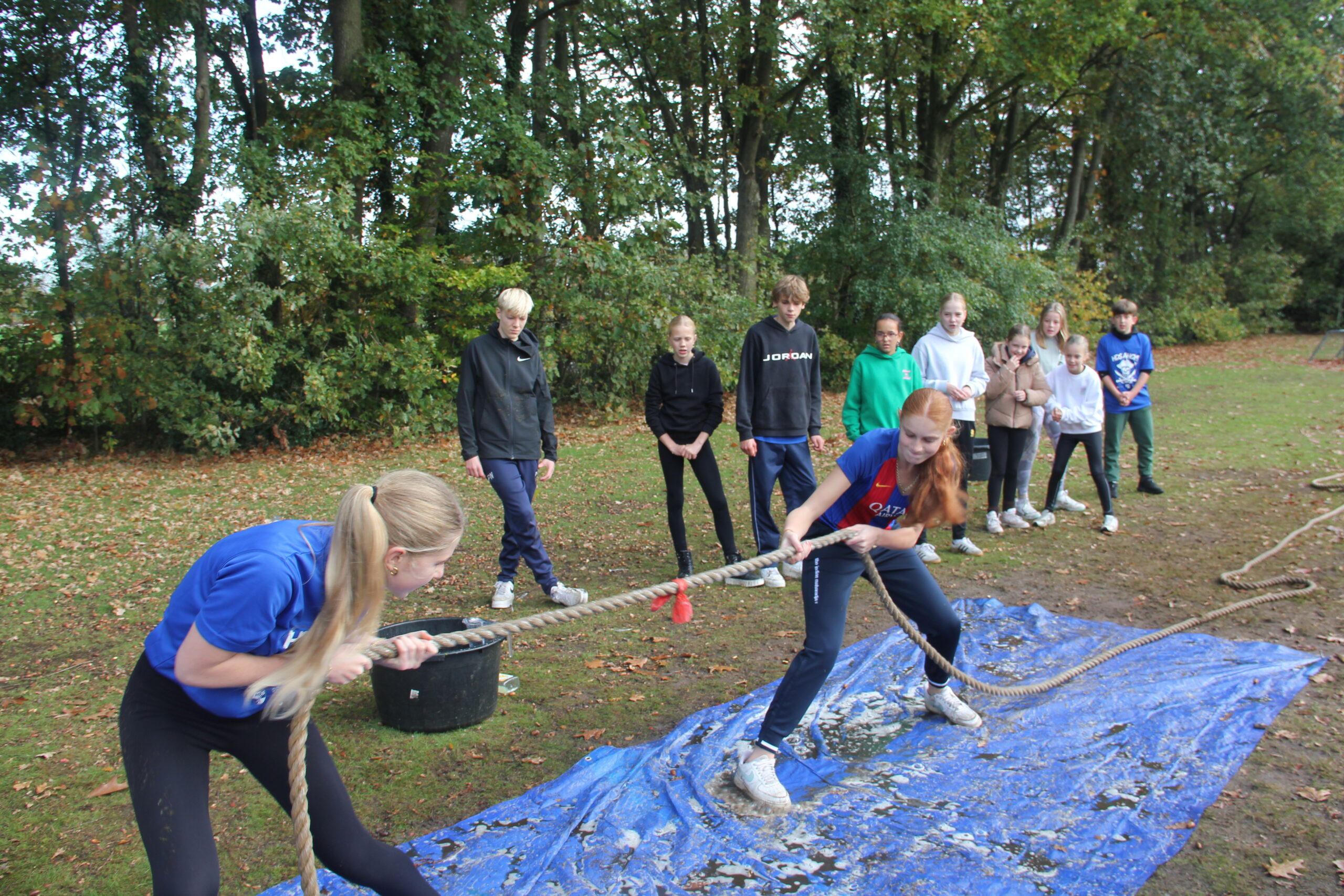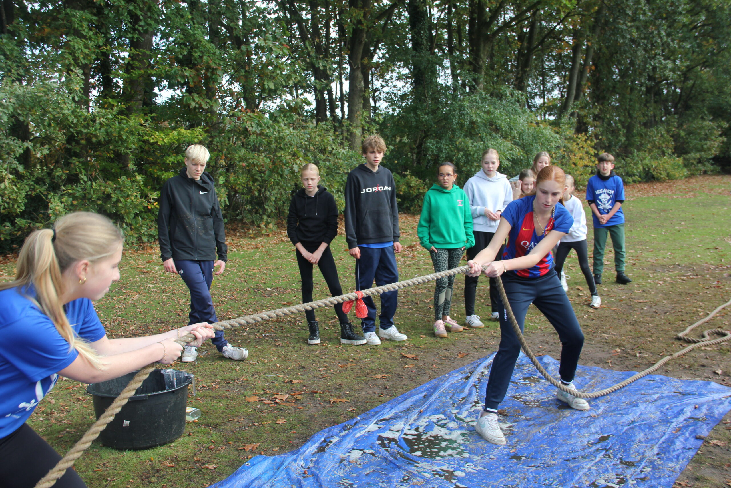 Vandaag werkten we aan onze capaciteiten als bemanning. Kanonnen laden, zeilen hijsen, dek schrobben, ankers werpen, aanmeren en ga zo maar door. Kort samengevat: samenwerken. Door in verschillende disciplines onszelf te meten met elkaar, kon uiteindelijk bepaald worden welk groepje vandaag de beste was op de Piraten Olympiade. Deze kampioenen mochten de échte kapiteins van deze week uitdagen: een strijd tegen de leiding. Wat een heerlijke woensdag!