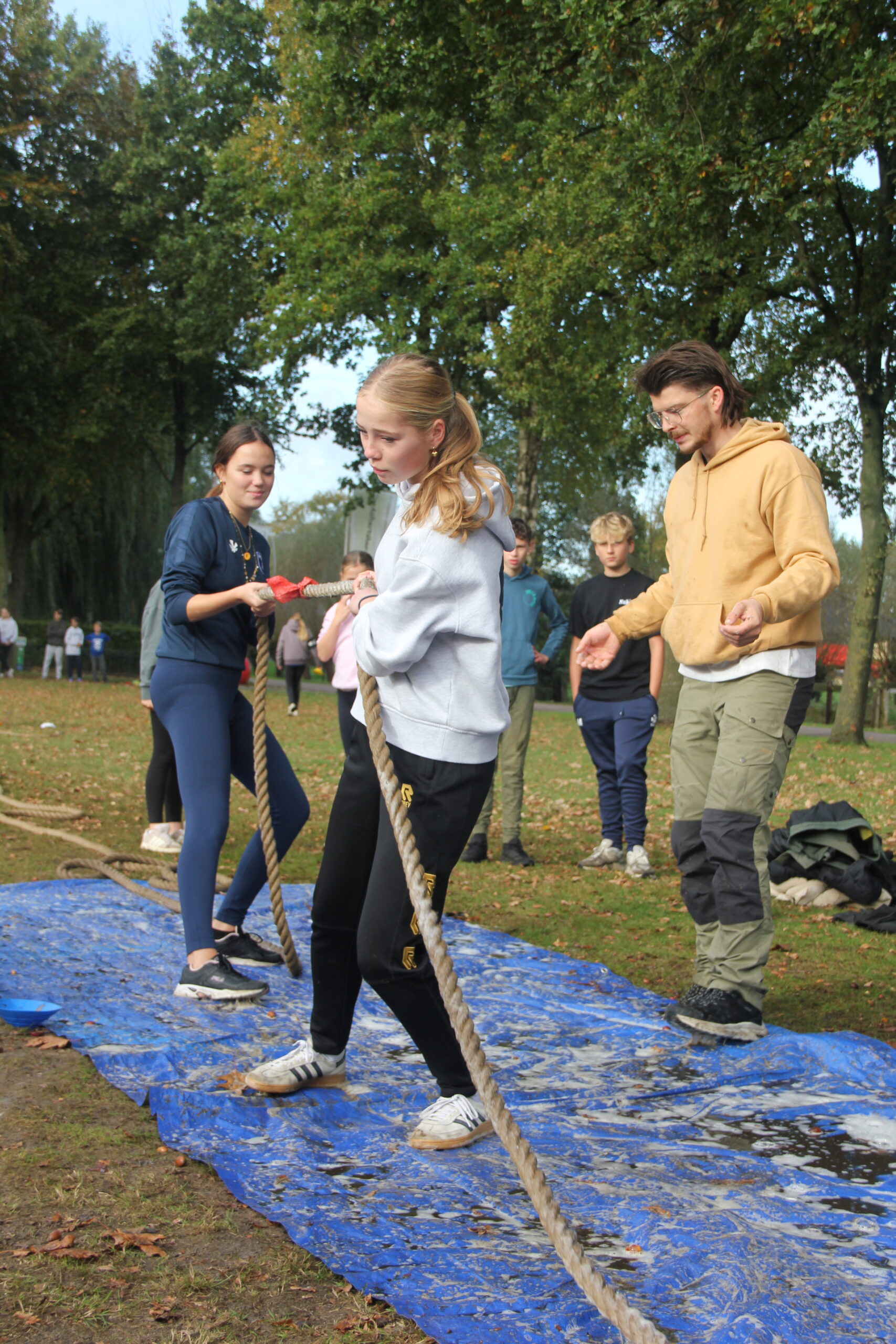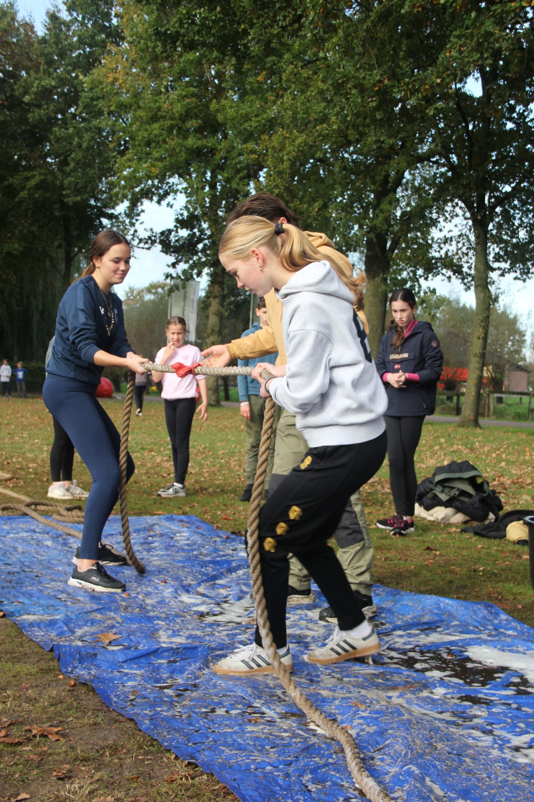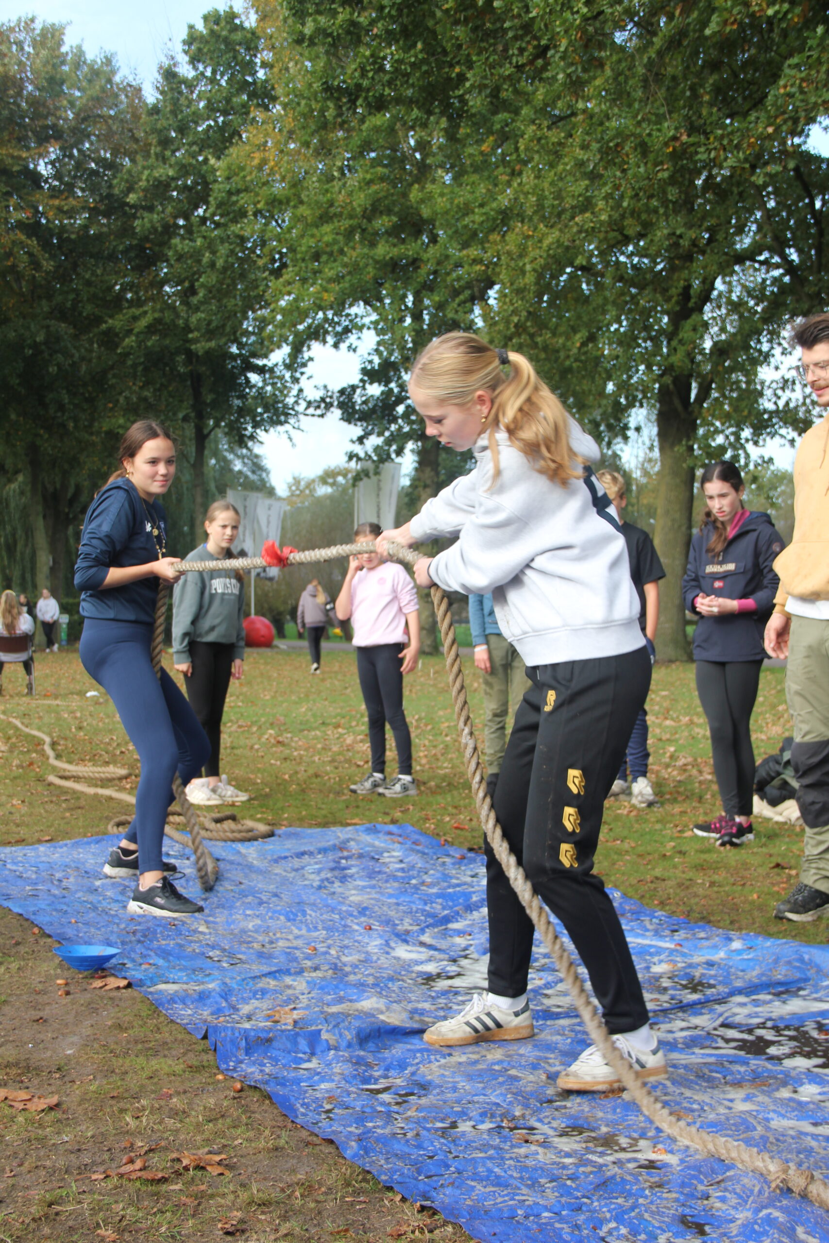 Vandaag werkten we aan onze capaciteiten als bemanning. Kanonnen laden, zeilen hijsen, dek schrobben, ankers werpen, aanmeren en ga zo maar door. Kort samengevat: samenwerken. Door in verschillende disciplines onszelf te meten met elkaar, kon uiteindelijk bepaald worden welk groepje vandaag de beste was op de Piraten Olympiade. Deze kampioenen mochten de échte kapiteins van deze week uitdagen: een strijd tegen de leiding. Wat een heerlijke woensdag!
