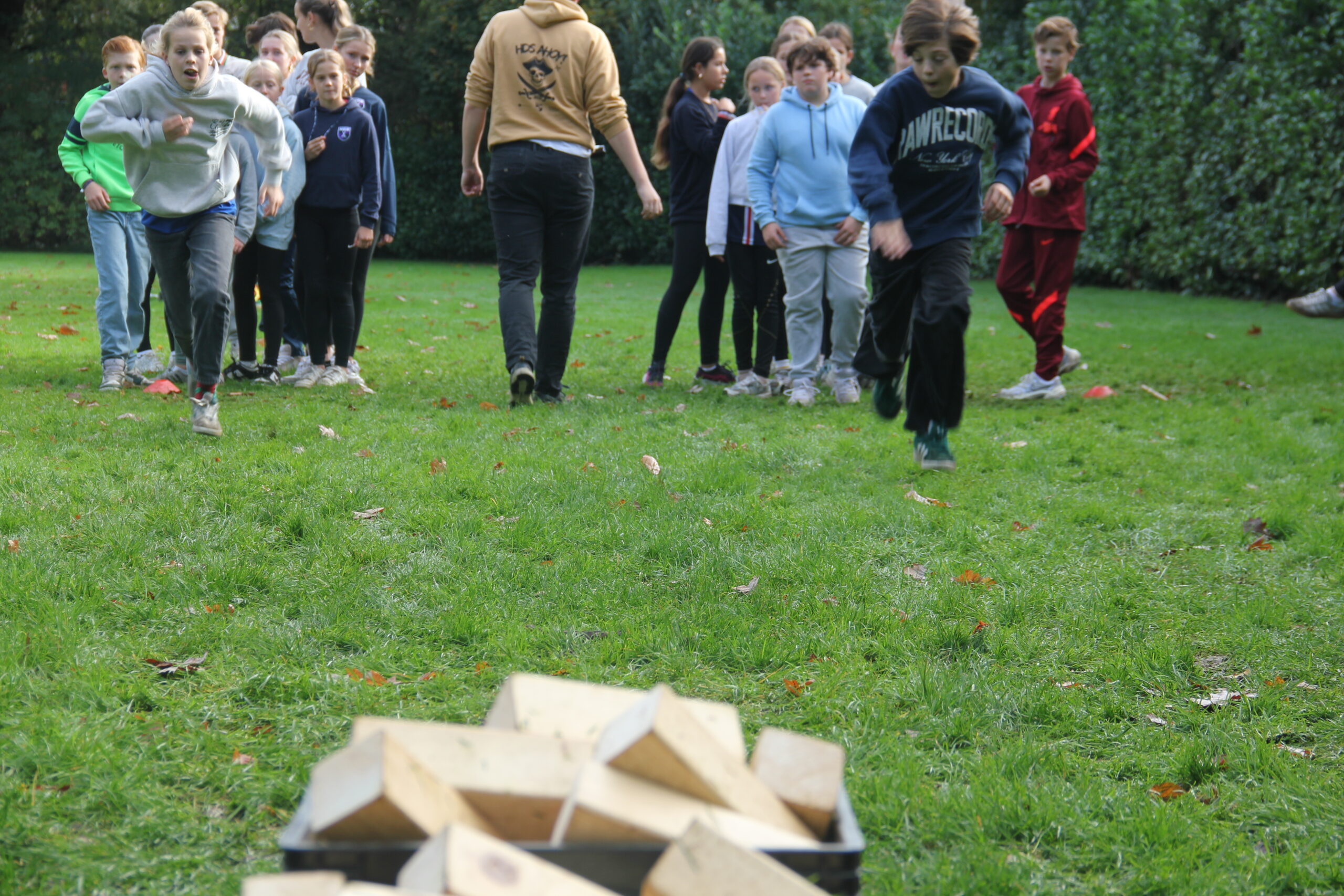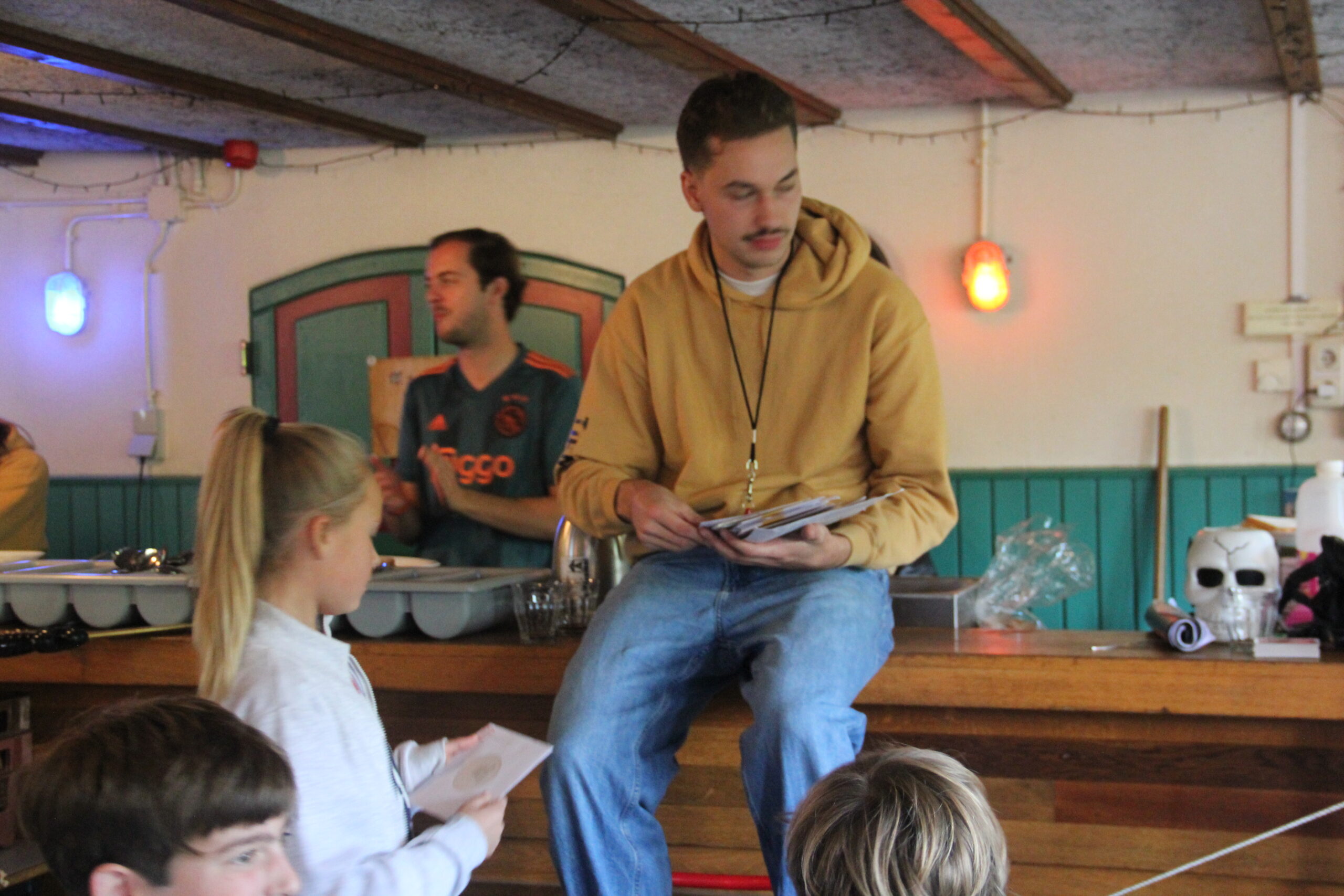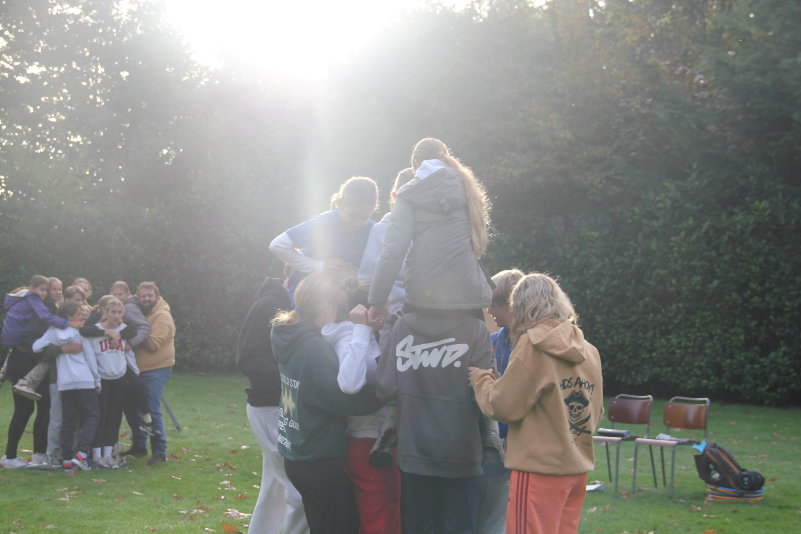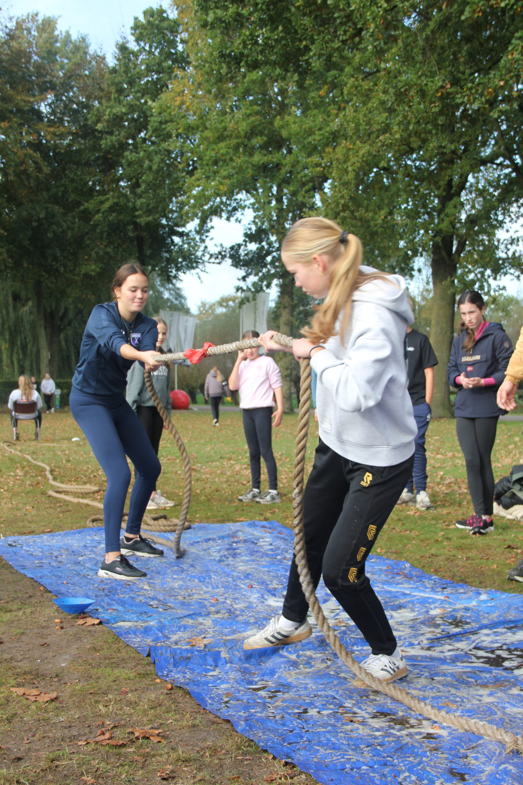 Vandaag werkten we aan onze capaciteiten als bemanning. Kanonnen laden, zeilen hijsen, dek schrobben, ankers werpen, aanmeren en ga zo maar door. Kort samengevat: samenwerken. Door in verschillende disciplines onszelf te meten met elkaar, kon uiteindelijk bepaald worden welk groepje vandaag de beste was op de Piraten Olympiade. Deze kampioenen mochten de échte kapiteins van deze week uitdagen: een strijd tegen de leiding. Wat een heerlijke woensdag!